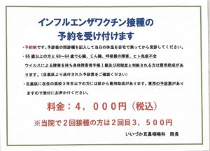 インフルエンザ予防接種、新型コロナワクチン接種を実施します