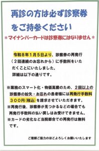 当院はマイナンバーカードによるオンライン資格確認をおこなっております。受診歴、薬剤情報、特定健診情報その他必要な情報を取得・活用して診察をおこないます。医療情報・システム基盤整備体制充実加算を算定しております。